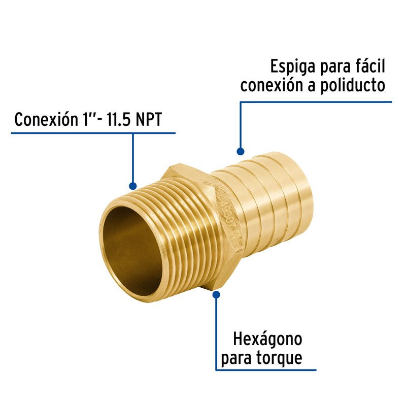 Adaptador macho de latón de 1" para poliducto, 49307 Foset ADPO 1M