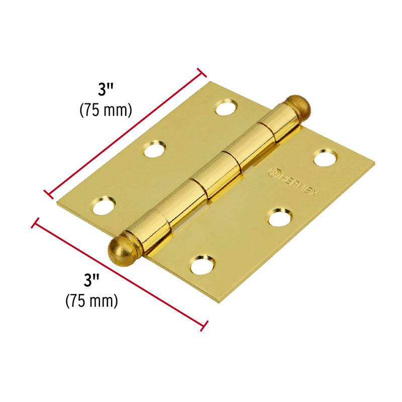 Bisagra cuadrada 3" acero latonado, redonda, Hermex