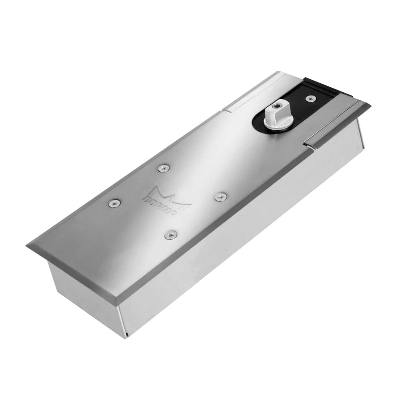 Se adapta a todo tipo de puertas de simple o doble acción. Cuerpo compacto que sustituye a un cierrapuertas en puertas de cristal, aluminio, metal y madera. Se instala ahogada en el concreto.