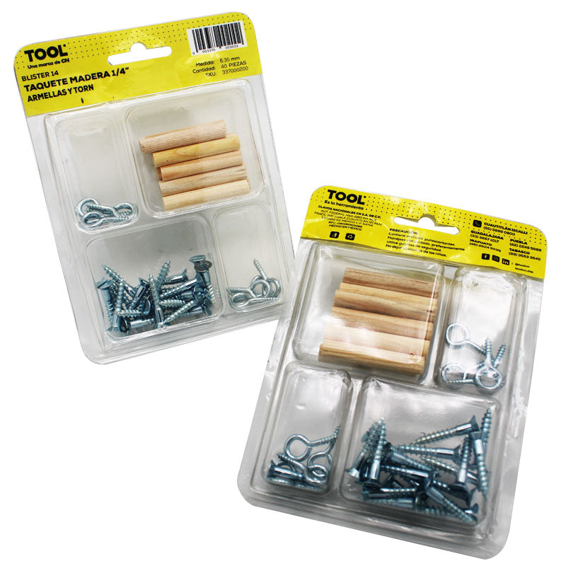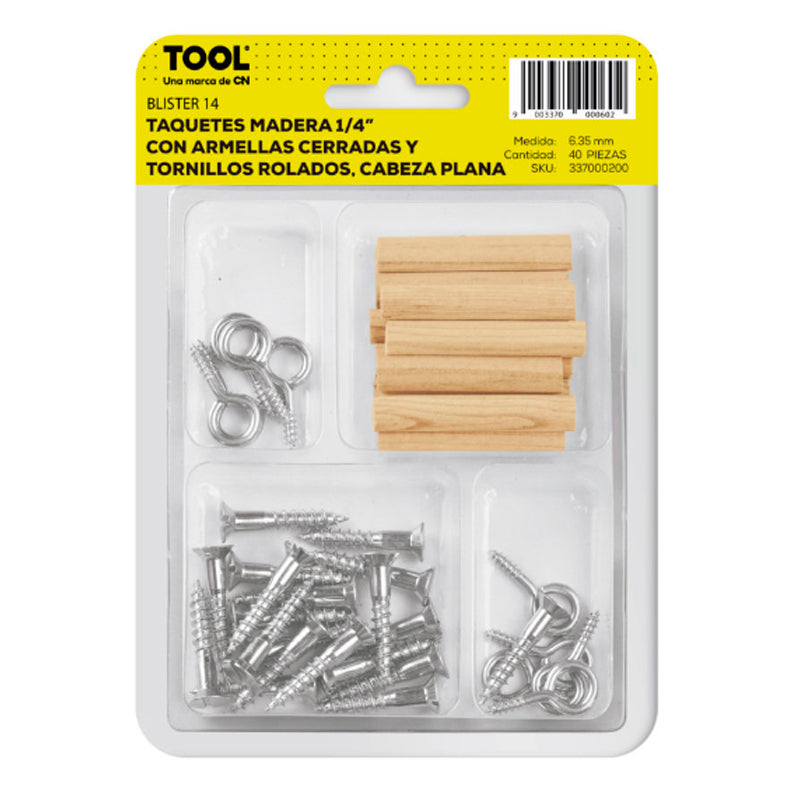 Blíster 14 Taquete Madera 1/4", Armella Y Tornillería Con 40 Piezas