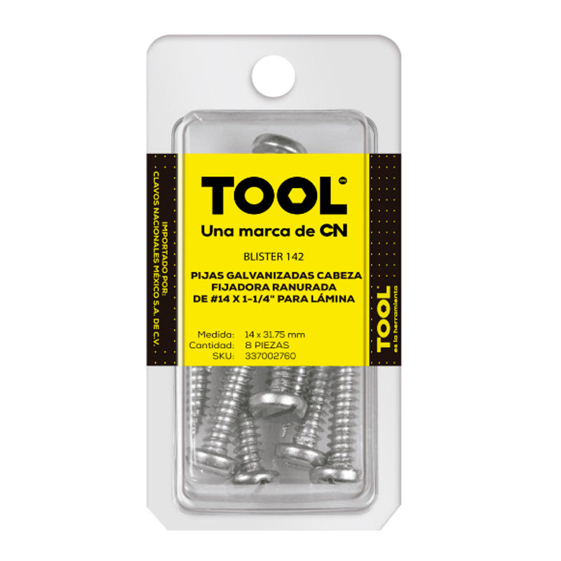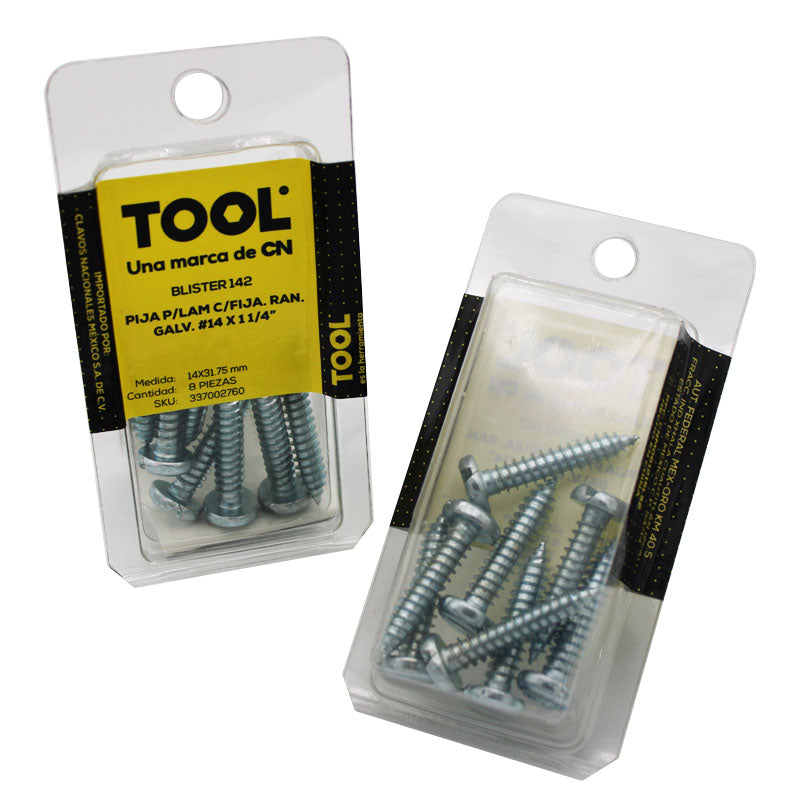Blíster 142 Pija Para Lámina Cabeza Fijadora Ranurada Galvanizada #14X1 1/4" Con 8 Piezas