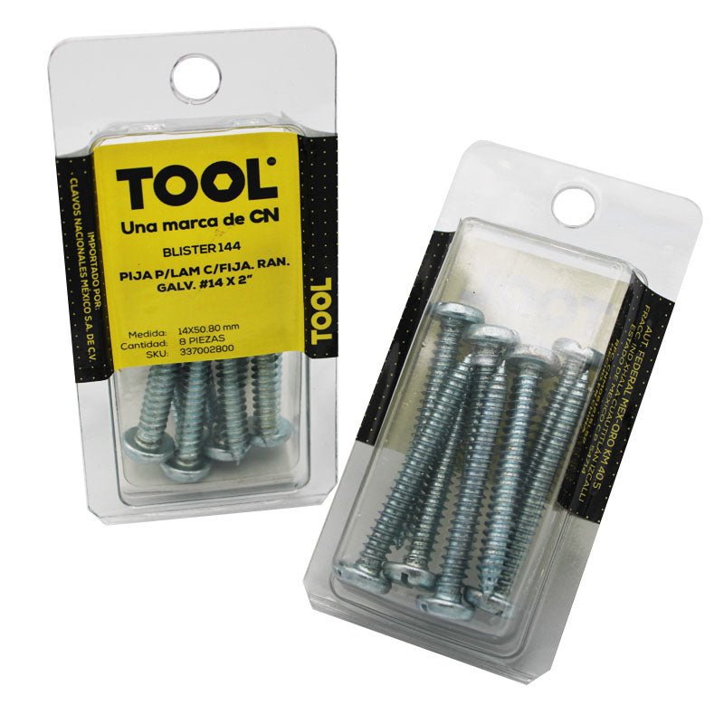 Para unir objetos metálicos, madera, fibra de vidrio y plástico. ? Blister 144 Pija P/Lam C/Fija.Ran.Galv#14X2 C/8Pz