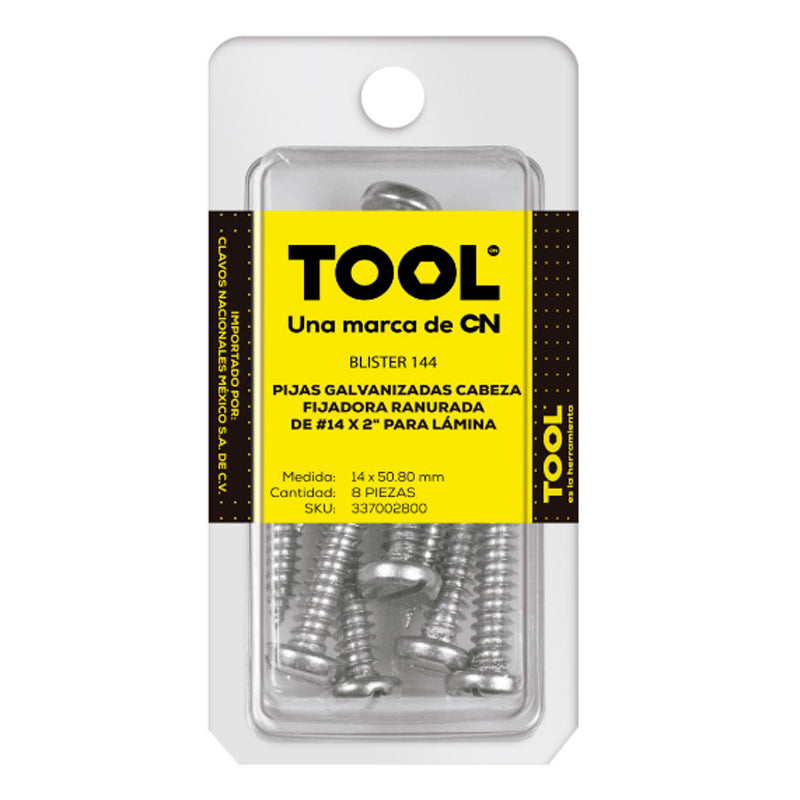 Blíster 144 Pija Para Lámina Cabeza Fijadora Ranurada Galvanizada #14X2" Con 8 Piezas
