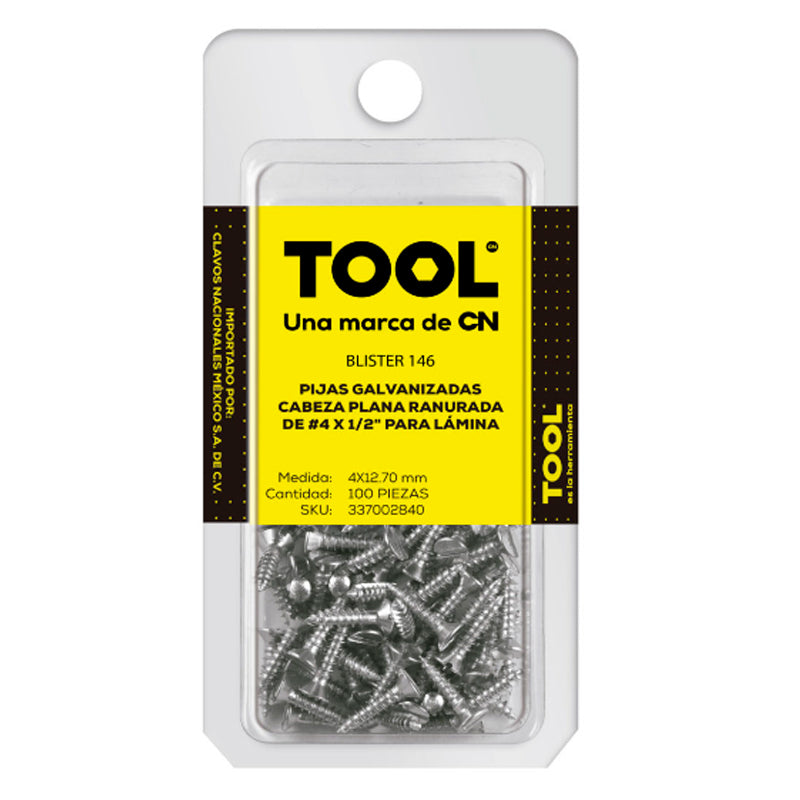Blíster 146 Pija Para Lámina Cabeza Plana Ranurada Galvanizada #4X1/2" Con 100 Piezas