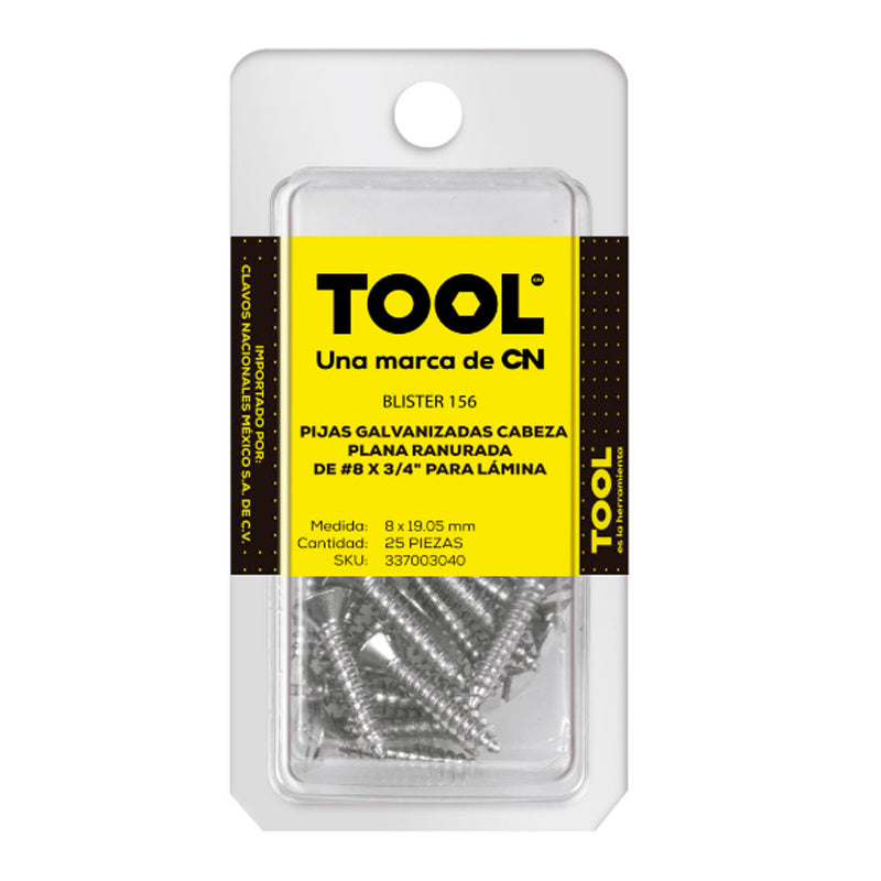 Blíster 156 Pija Para Lámina Cabeza Plana Ranurada Galvanizada #8X3/4" Con 25 Piezas
