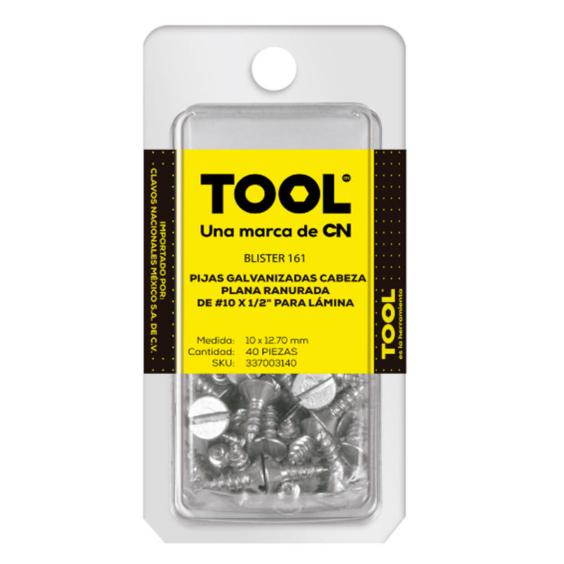 Blíster 161 Pija Para Lámina Cabeza Plana Ranurada Galvanizada #10X1/2" Con 40 Piezas