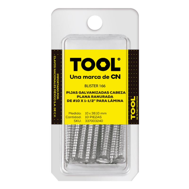Blíster 166 Pija Para Lámina Cabeza Plana Ranurada Galvanizada #10X1 1/2"