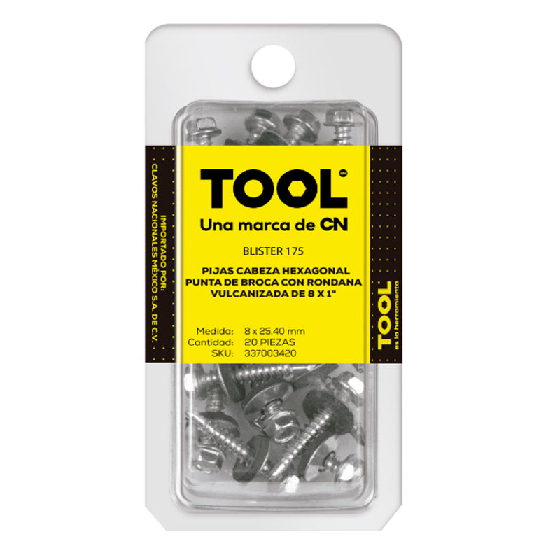 Blíster 175 Pija (Con Accesorios) Cabeza Hexagonal Punta Broca 8"X1" Con 20 Piezas