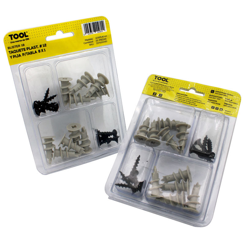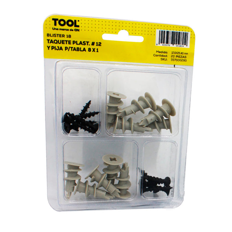 Blíster 18 Taquete Plástico #12 Y Pija Para Tablaroca 8X1 Con 20 Piezas