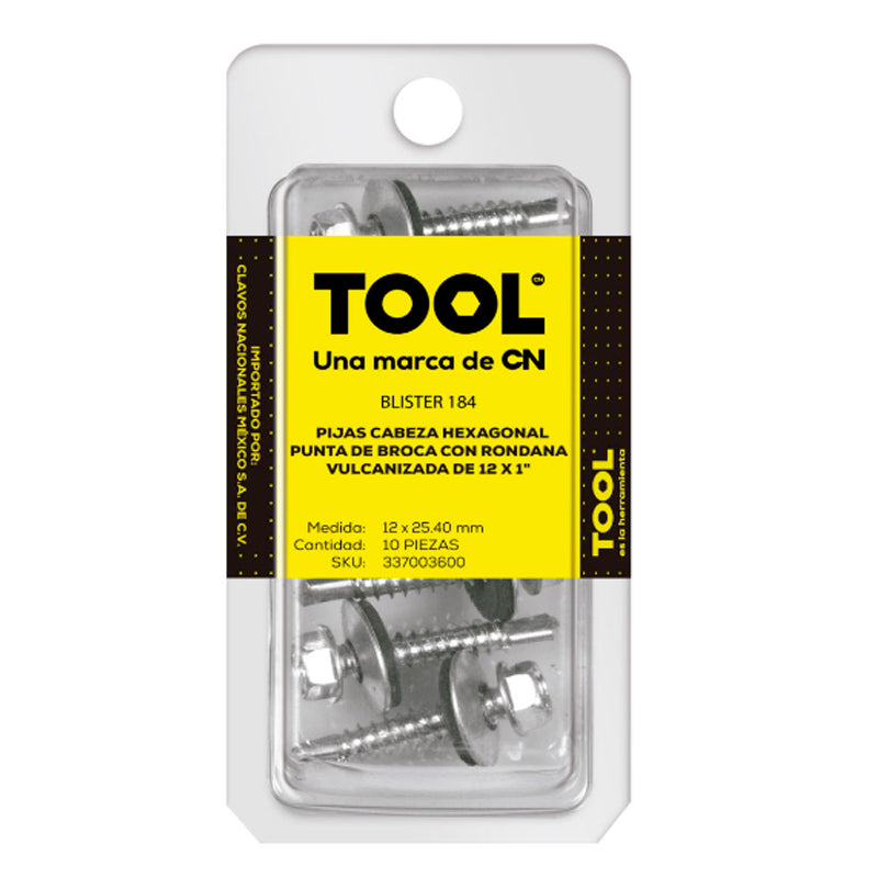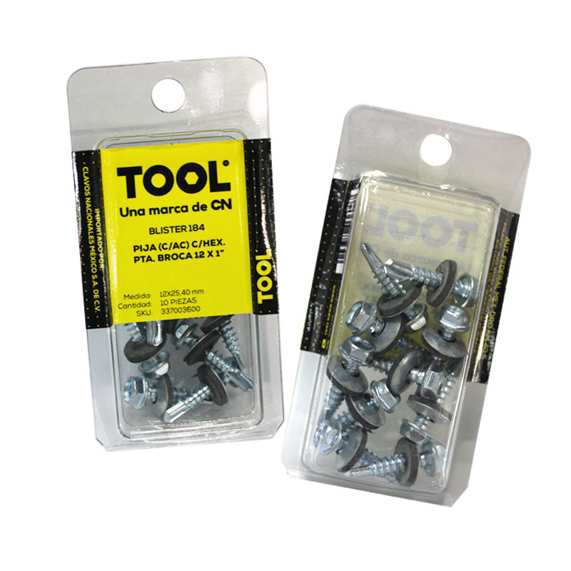 Aplicación: Ideales para fijación de uso general. ? Blister 184 Pija(C/Ac)C/Hex.Pta.Broca.12X1 C/10Pz