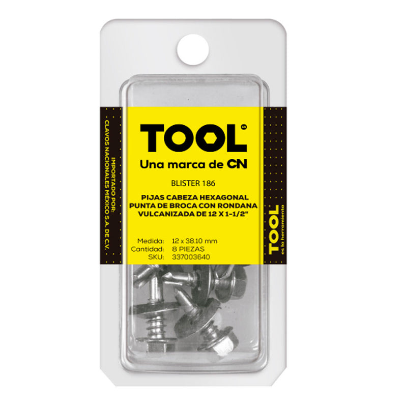 Aplicación: Ideales para fijación de uso general. ? Blister 186 Pija(C/Ac)C/Hex.Pta.Broca.12X1.1/2 8P