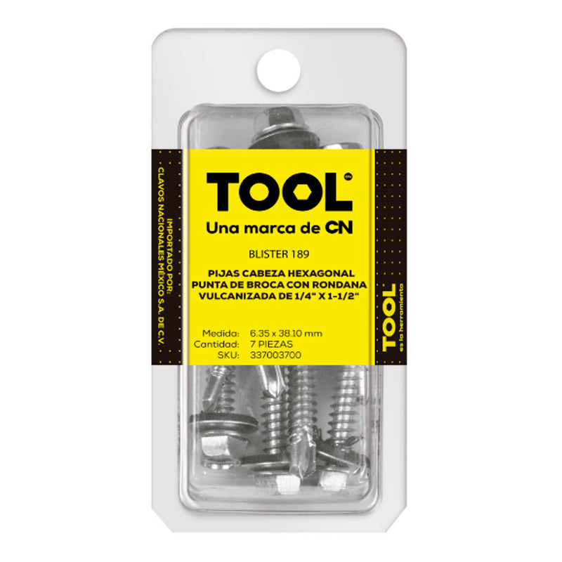 Aplicación: Ideales para fijación de uso general. ? Blister 189 Pija(C/Ac)C/Hex.Pta.Broca1/4X1.1/2 7Pz