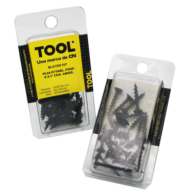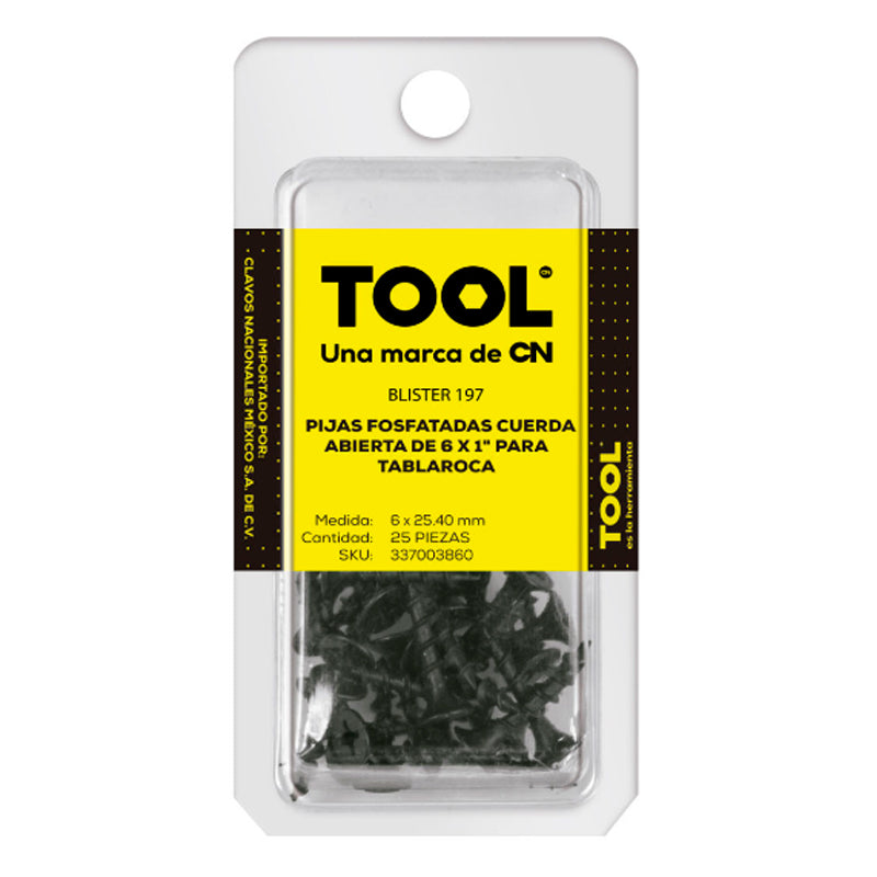 Blíster 197 Pija Para Tablaroca Fosfatada 6 X 1" Cuerda Abierta Con 25 Pieza
