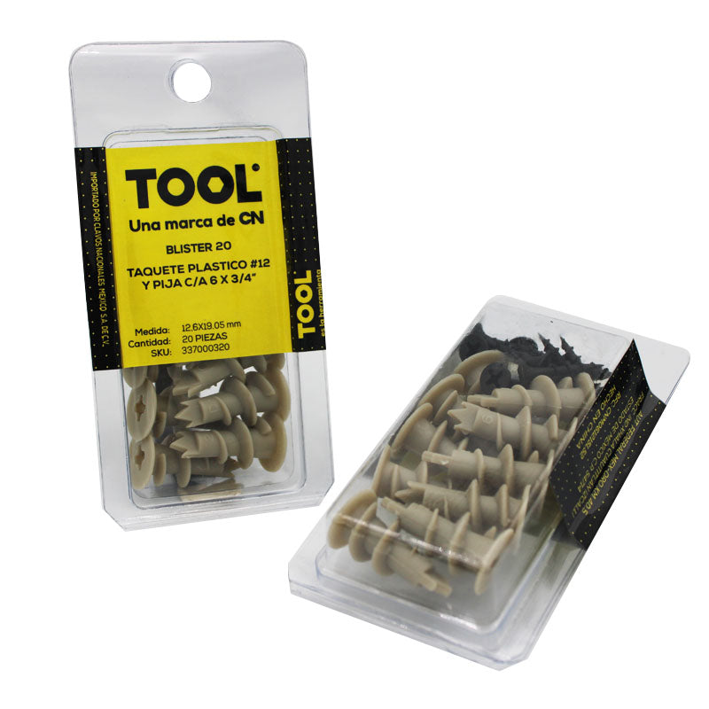 Blíster 20 Taquete Plástico #12 Y Pija Con A 6X3/4" Con 20 Piezas