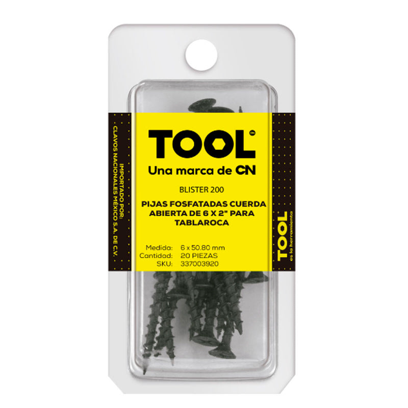El diámetro de las roscas de los tornillos de los paneles de yeso es mayor que el diámetro de la empuñadura. Los tornillos para paneles de yeso tienen roscas más profundas que los tornillos normales, lo que evita que se desprendan fácilmente del panel de yeso. Están hechos de acero y requieren un destornillador eléctrico para perforarlos en el panel de yeso. Además, los tornillos para paneles de yeso se emplean a menudo junto con anclajes de plástico que ayudan a distribuir el peso del objeto colgado de manera uniforme sobre la superficie. ? Blister 200 Pija P/Tablaroca 6X2" Abierta C/20Pz