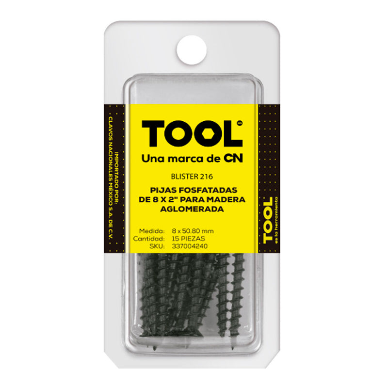 Blíster 216 Pija Fosfatada Para Madera Aglomerada 8X/2" Con 15 Piezas