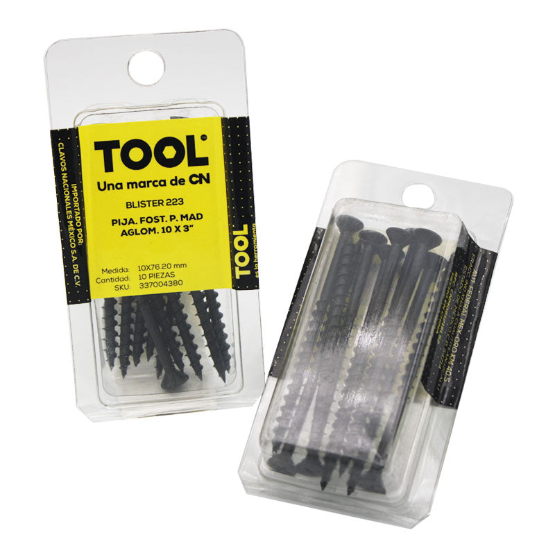 El diámetro de las roscas de los tornillos de los paneles de yeso es mayor que el diámetro de la empuñadura. Los tornillos para paneles de yeso tienen roscas más profundas que los tornillos normales, lo que evita que se desprendan fácilmente del panel de yeso. Están hechos de acero y requieren un destornillador eléctrico para perforarlos en el panel de yeso. Además, los tornillos para paneles de yeso se emplean a menudo junto con anclajes de plástico que ayudan a distribuir el peso del objeto colgado de manera uniforme sobre la superficie. ? Blister 223 Pija.Fost.P.Mad Aglom. 10X3" C/10Pzas