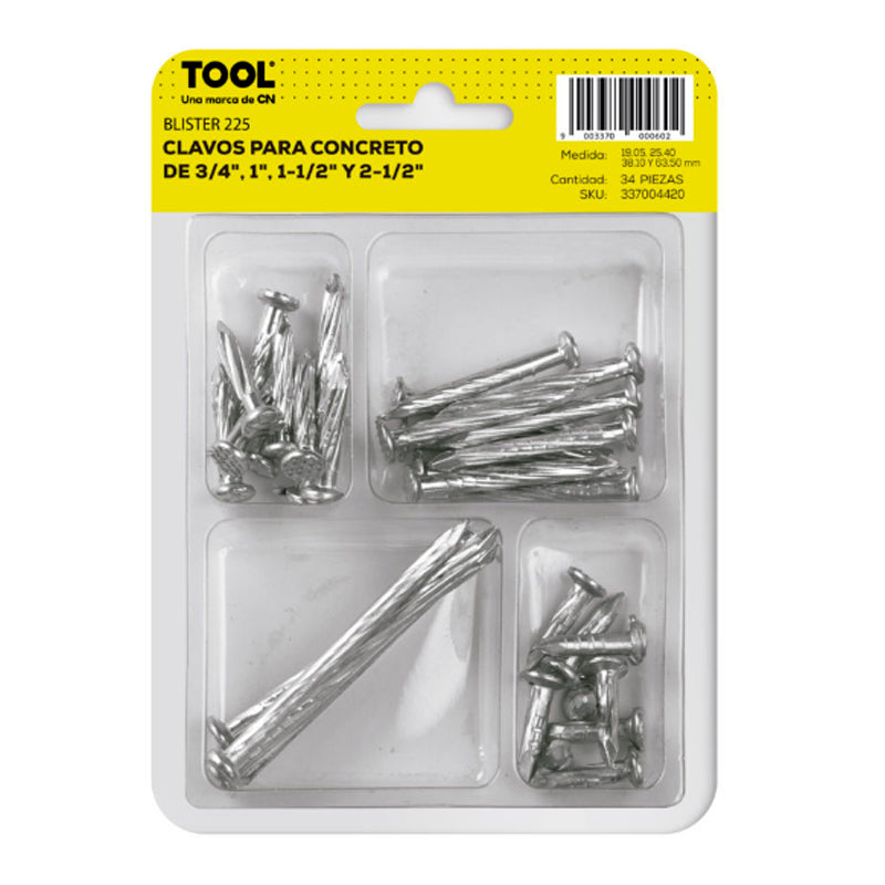 Blíster 225 Clavo Concreto Galvanizado 3/4",1",1 1/2" Y 2