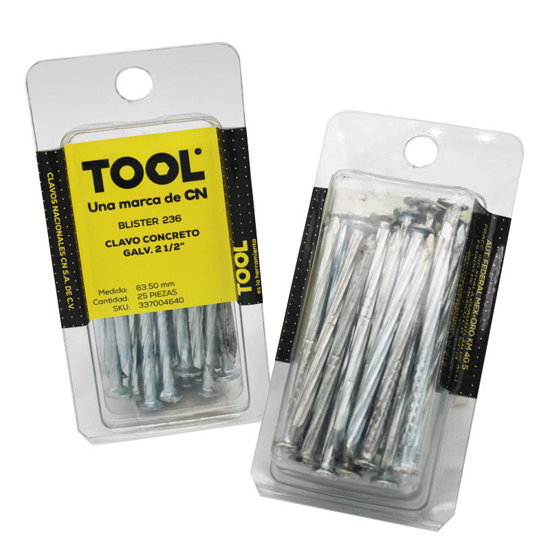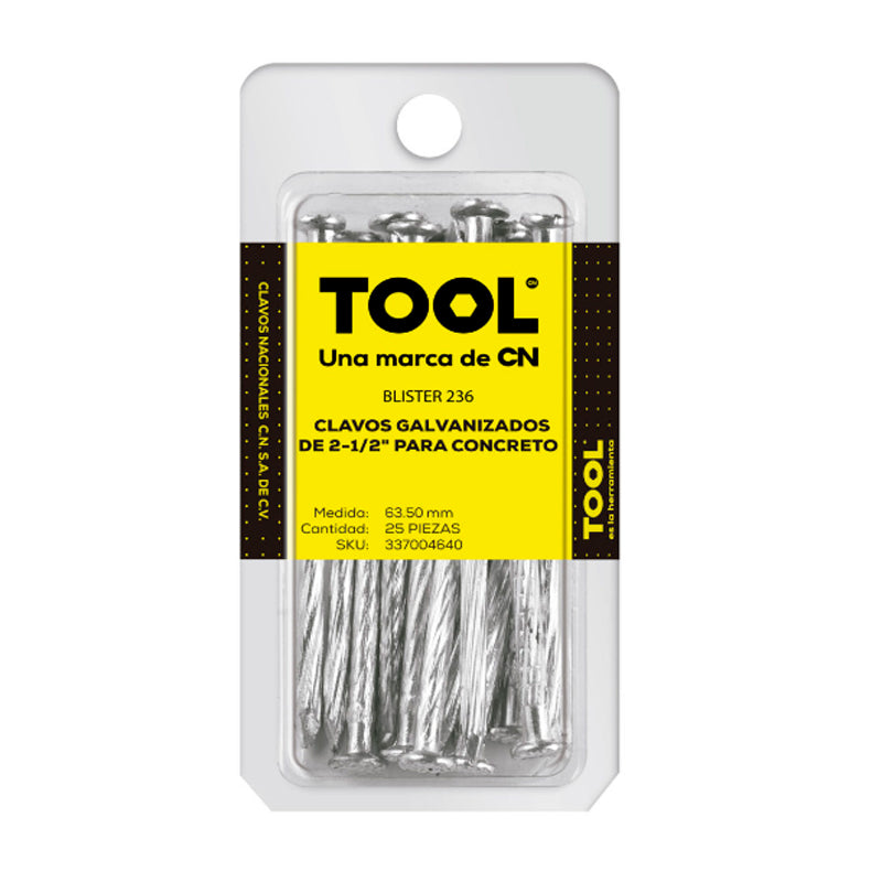 Blíster 236 Clavo Concreto Galvanizado 2 1/2" Con 25 Piezas