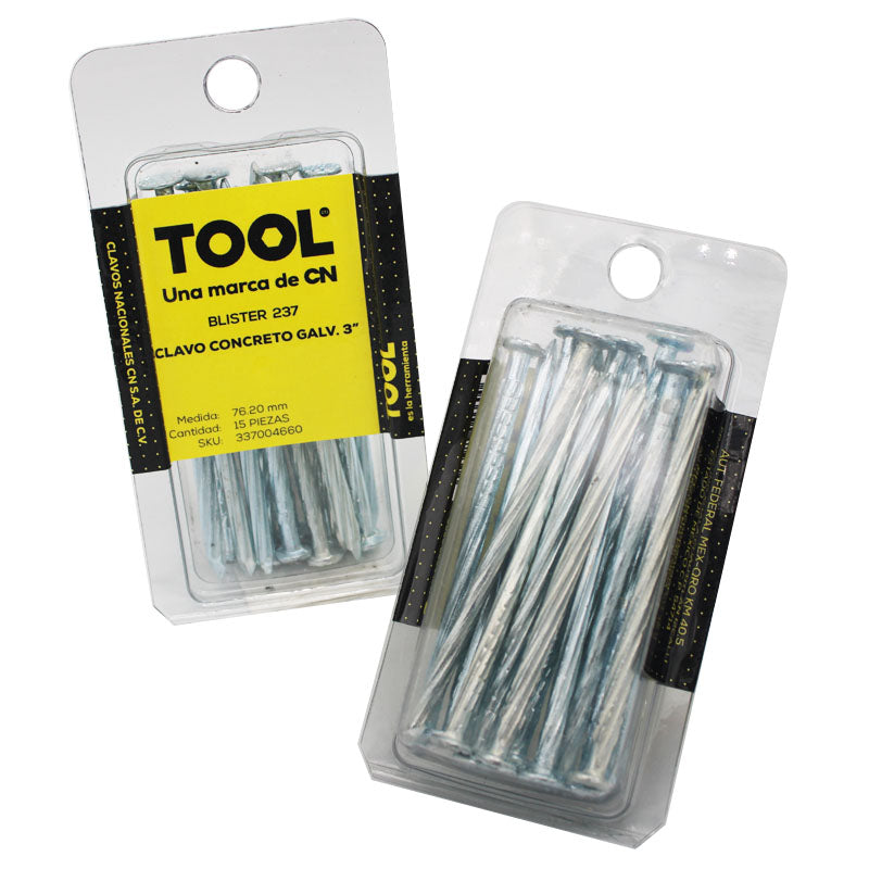 Blíster 237 Clavo Concreto Galvanizado 3" Con 15 Piezas