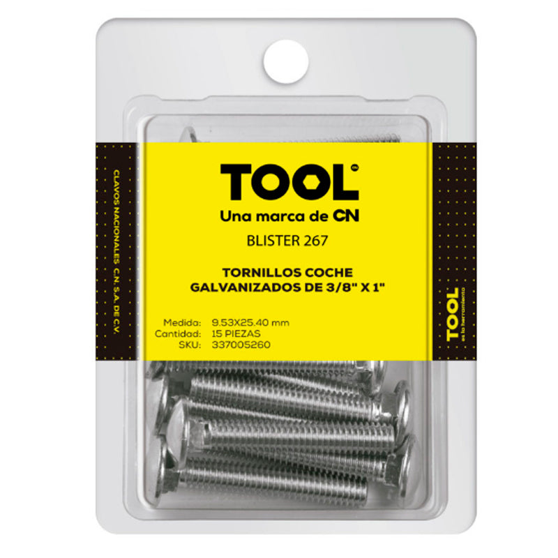 Blíster 267 Tornillo Cabeza Coche Galvanizado 3/8"X1" Con 15 Piezas
