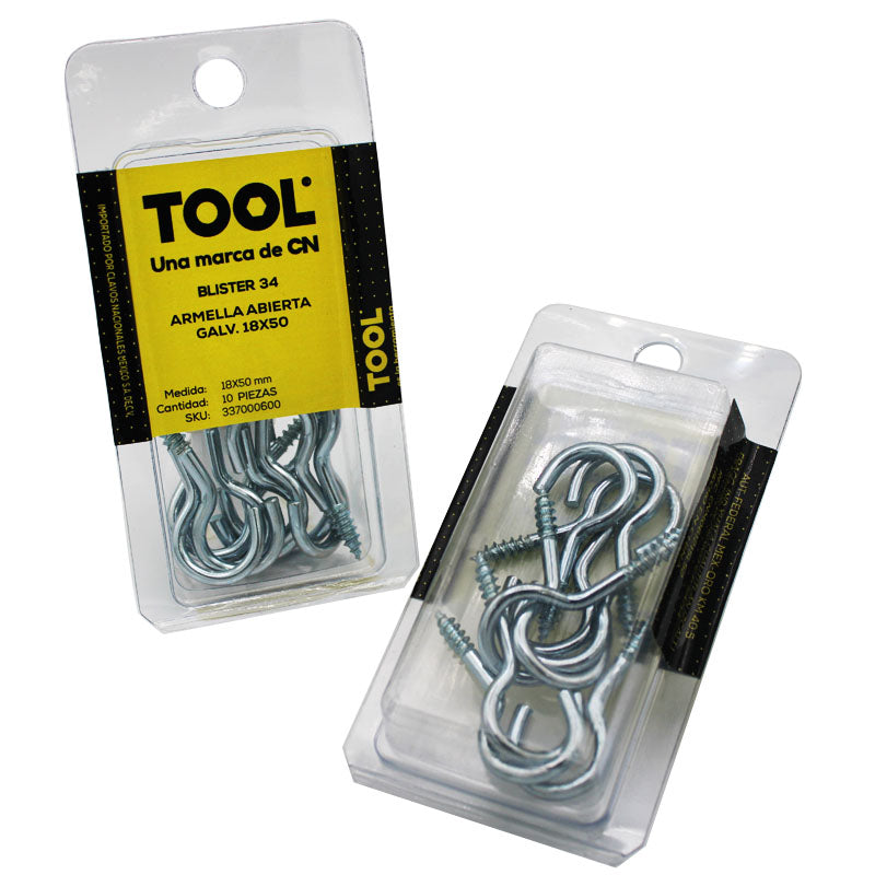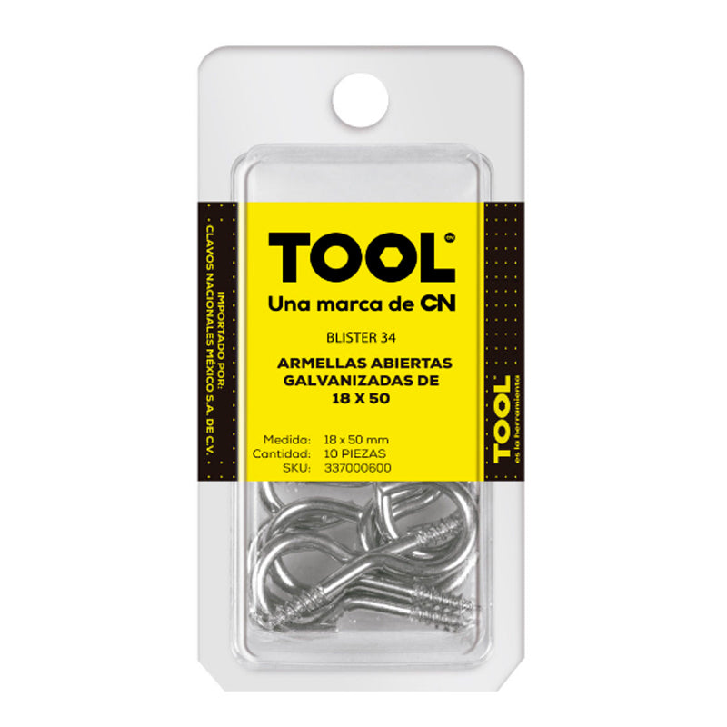 Blíster 34 Armella Abierta Galvanizada 18 X 50 Con 10 Piezas