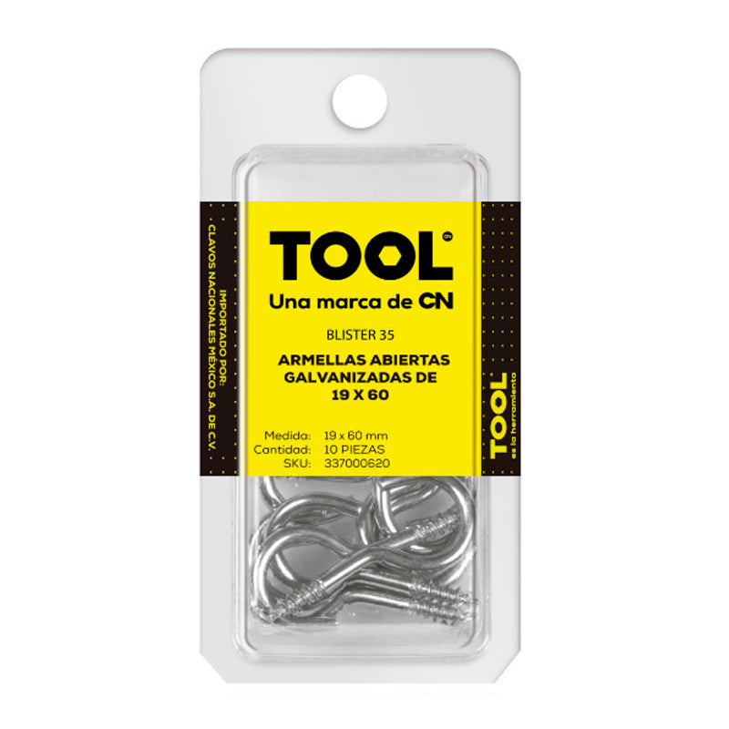 Blíster 35 Armella Abierta Galvanizada 19 X 60 Con 10 Piezas