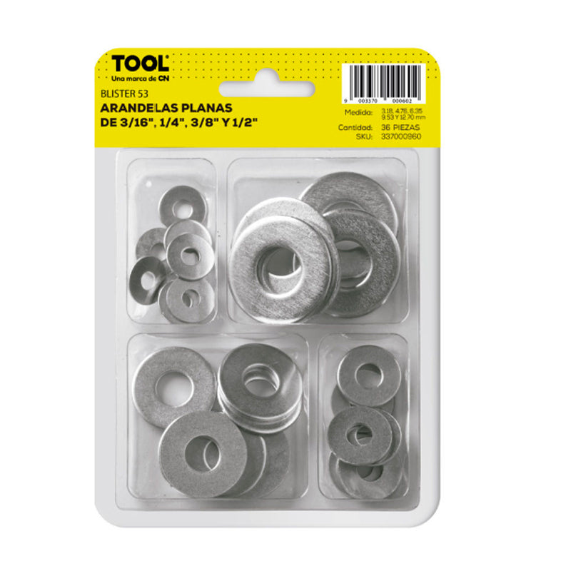 Blíster 53 Arandelas Plan.Galvanizada1/8,3/16,1/4,