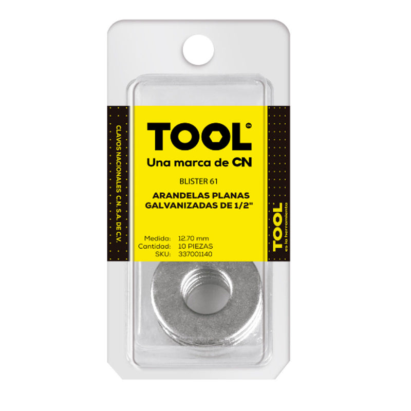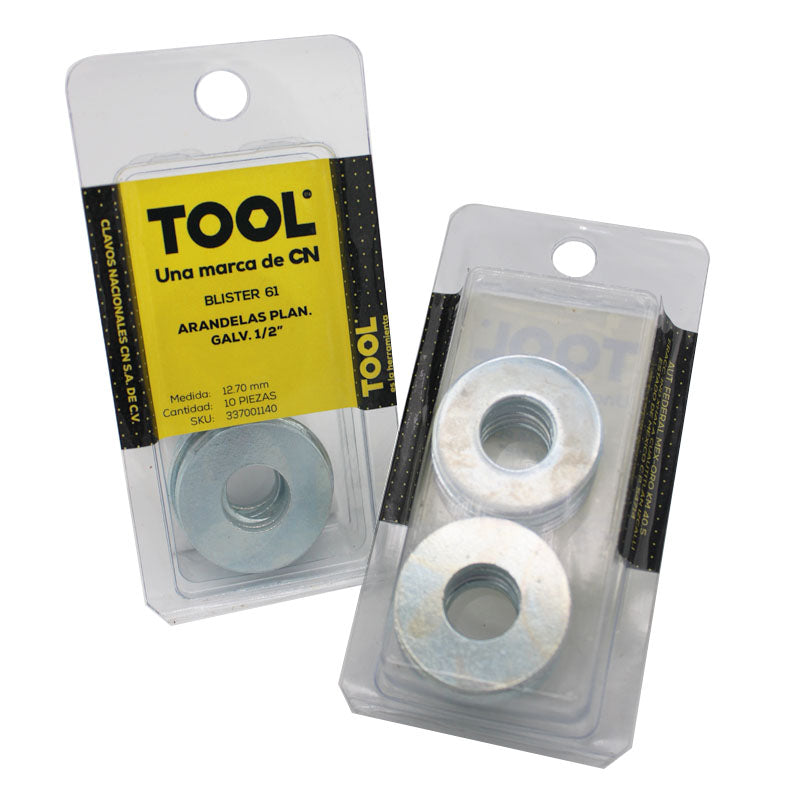 Blíster 61 Arandelas Plan.Galvanizada 1/2" Con 10 Piezas