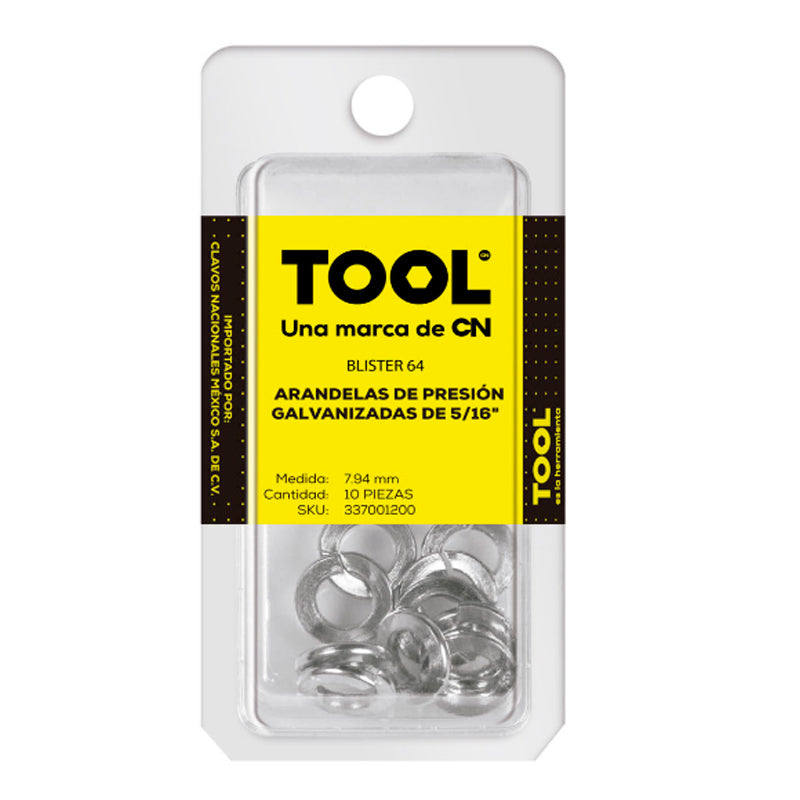 Blíster 64 Arandelas Presión Galvanizada 5/16" Con 10 Piezas