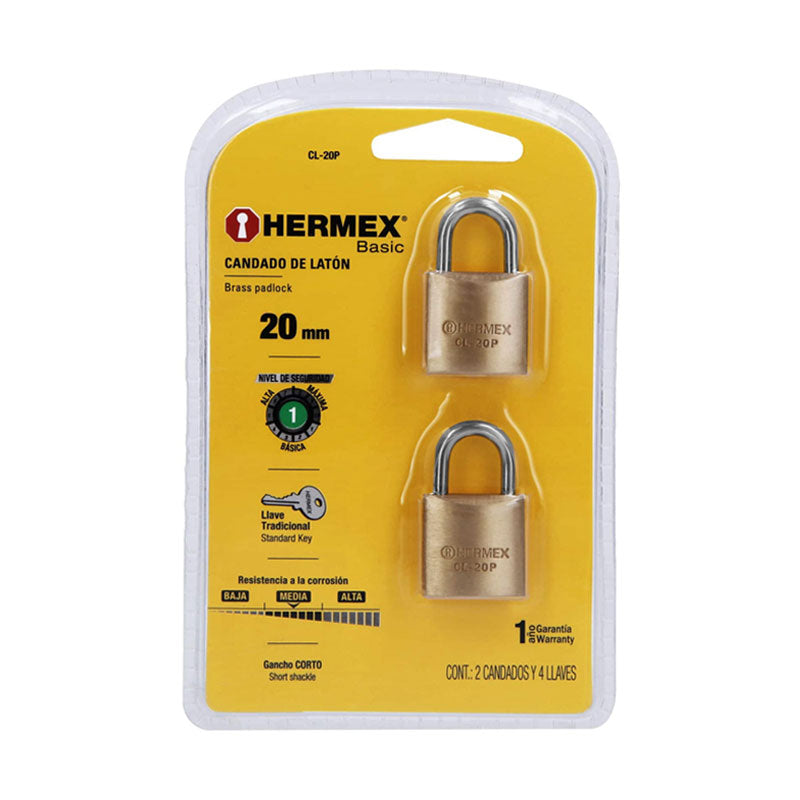 Blíster con 2 candados de latón de 20mm, Hermex basic