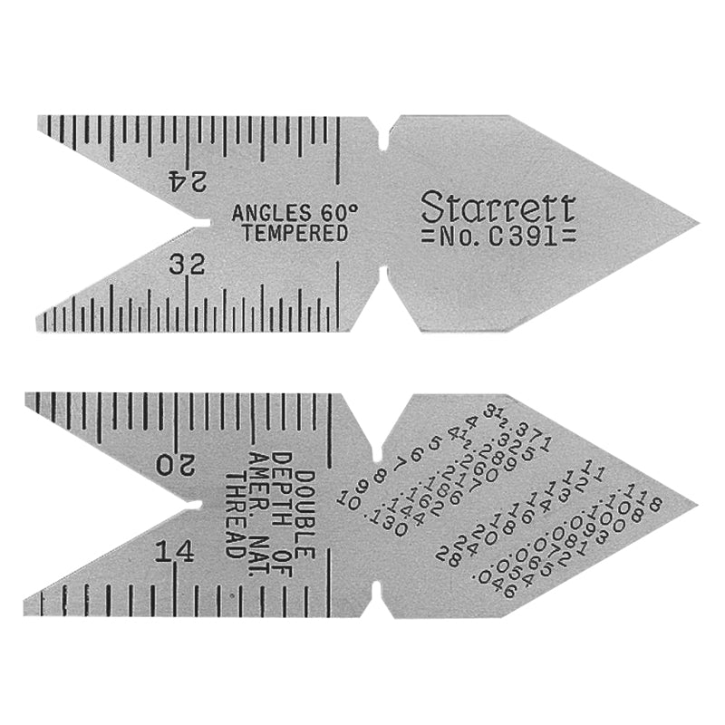Tiene una escala muy útil para encontrar el número de hilos por pulgada a través de las graduaciones en 1/14”, 1/20”, 1/24” y 1/32”.