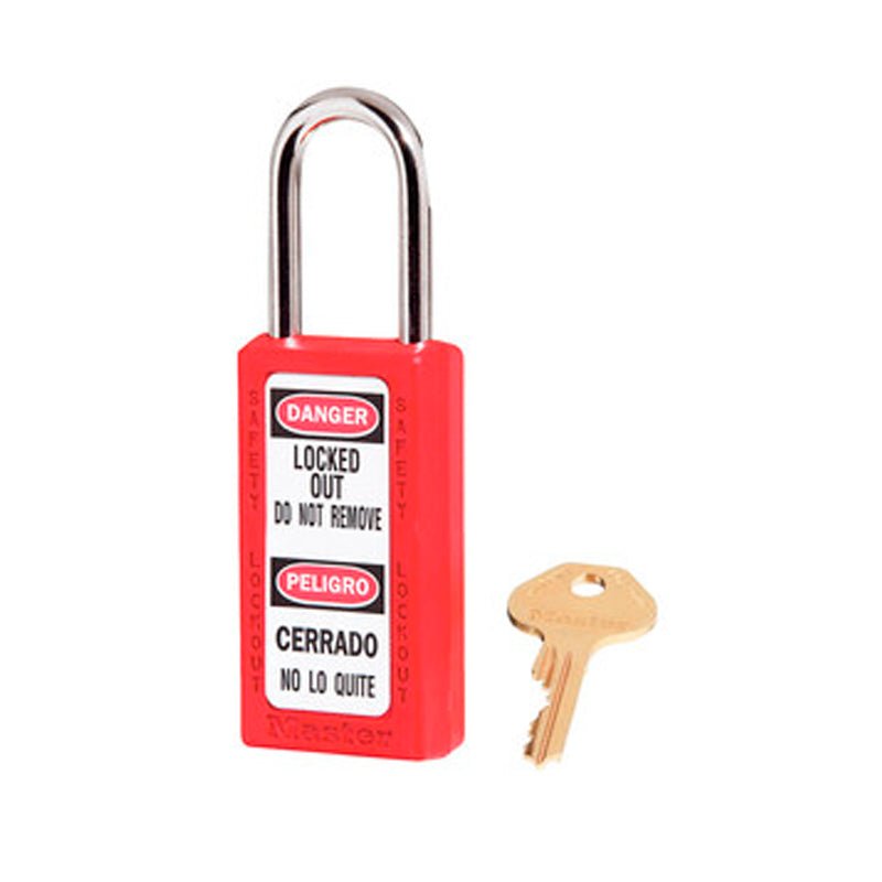 Candado de bloqueo su uso es básicamente de respeto para cerrar llaves y válvulas industriales de manera simbólica. Su composición es de media seguridad. Fabricado en plástico para romperse fácilmente en caso de emergencia. La retención de la llave garantiza que el candado no quede abierto. Cilindro de 6 pasadores.
