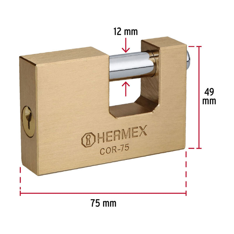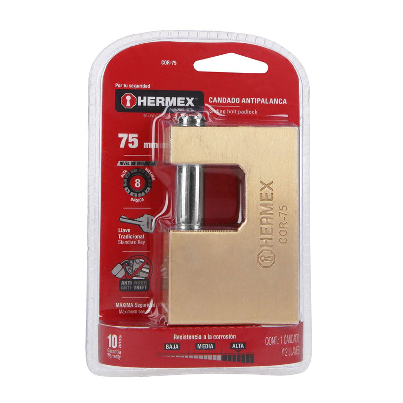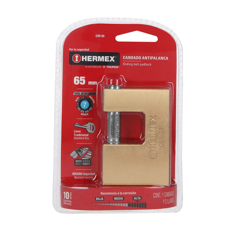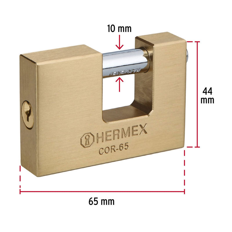 Candado antipalanca, 65mm, cuerpo de latón llave tradicional, Hermex