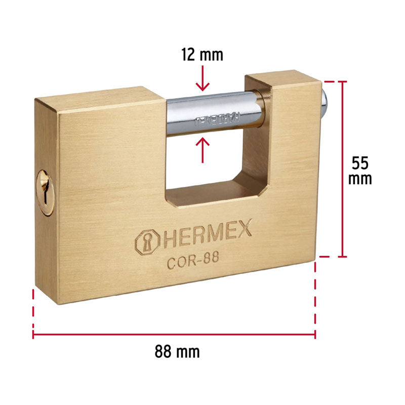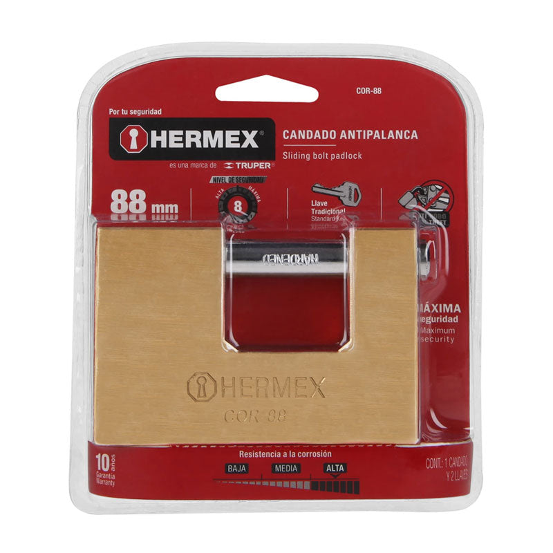 Candado antipalanca, 88mm, cuerpo de latón llave tradicional, Hermex