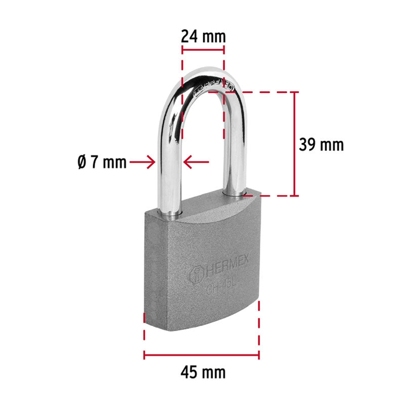 Título:Candado hierro gancho largo ch-45l hermex 43324