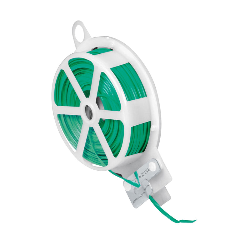 Fabricada en alambre de acero con forro de plástico, flexible, resistente e impermeable, empaque dosificador con cortador, alambre útil para amarrar bolsas, asegurar cajas o crear adornos con flores. Forrado en plástico color verde, que facilita su identificación.