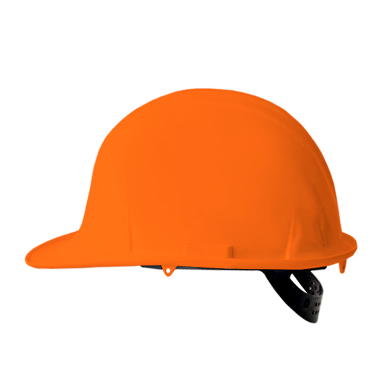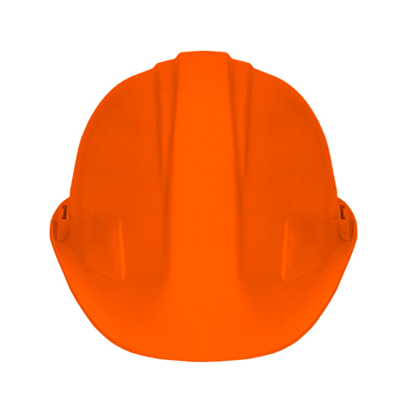 Casco de seguridad color naranja con suspensión de 4 puntos de apoyo, ideal para proteger la cabeza del usuario contra impactos y contra penetración de objetos punzo cortantes en industrias mineras, construcciones, industrias petroleras e industrias marítimas.