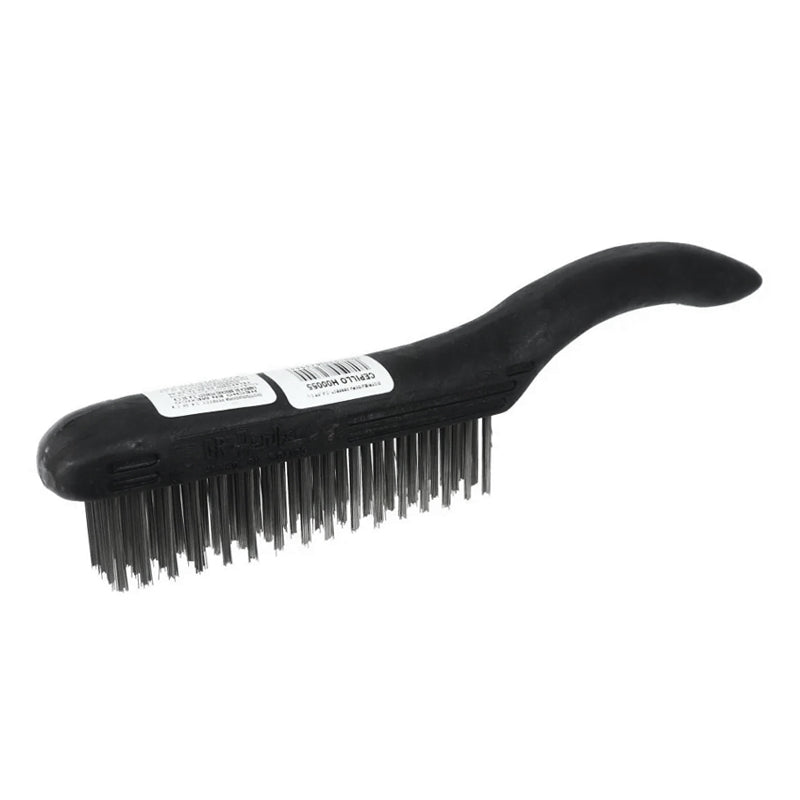 Cepillo con alambre de acero y mango curvo.