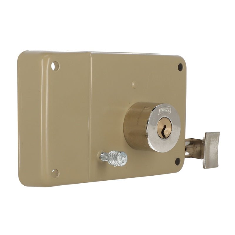 Cerradura de sobreponer para puertas abatibles metálicas y de madera