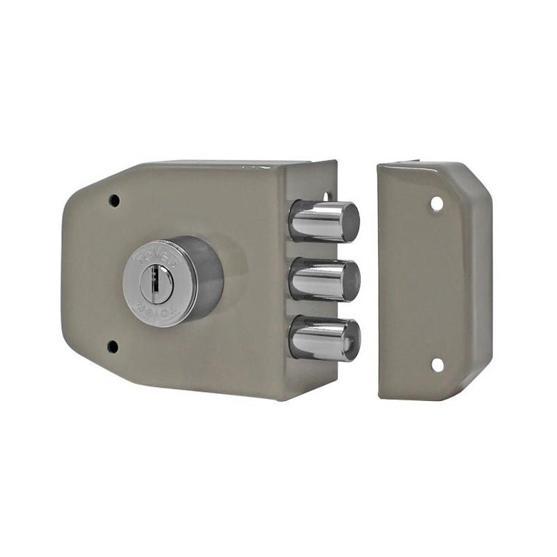 Cerradura de sobreponer para puertas de madera o metal en entradas principales y rejas. Ideal para puertas derechas o izquierdas.