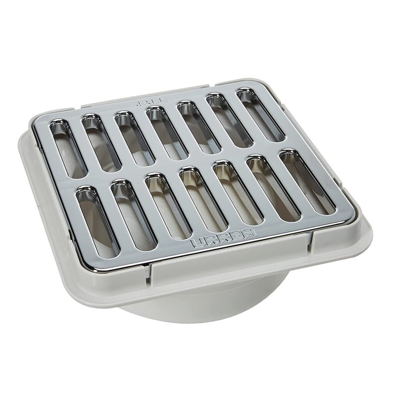 Coladera plast. Cuadrada c/rejilla cromo 180 Urrea