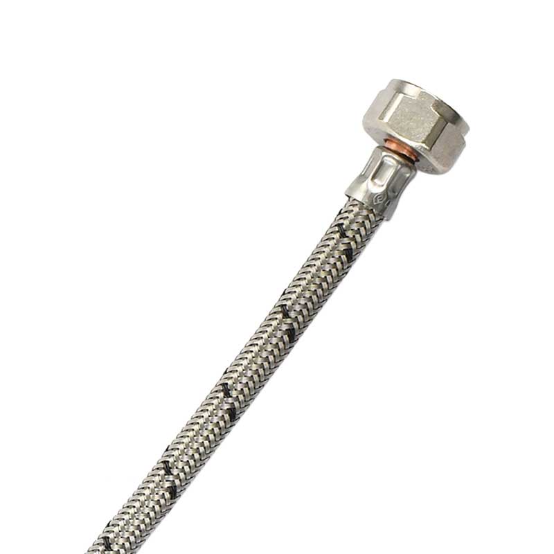 Manguera de EPDM, espiga de cobre, férula de acero inoxidable, tuerca de latón niquelado y empaque cónico de hule para reforzar la entrada e impedir la aparición de goteras.