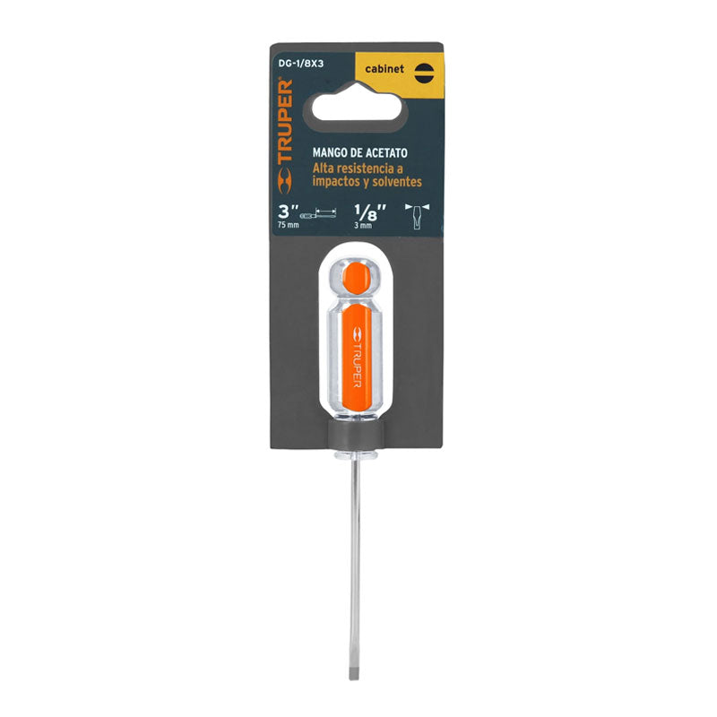 Desarmador Cabinet 1/8" X 3" Mango De Acetato, Truper