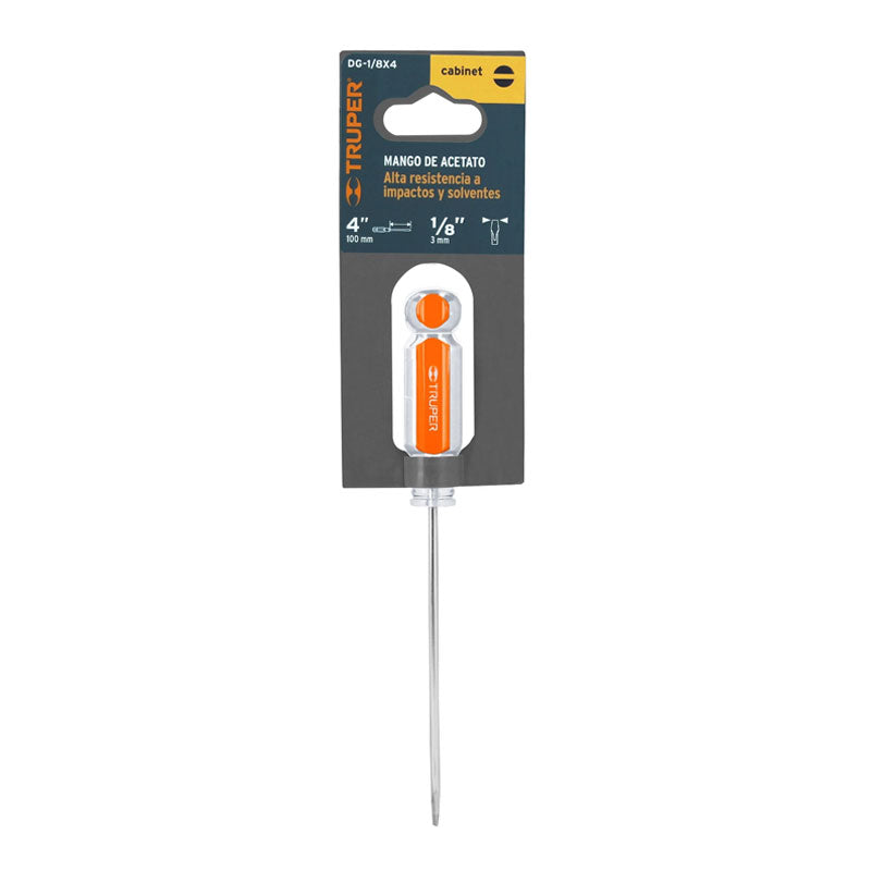 Desarmador cabinet 1/8" x 4" mango de acetato, Truper
