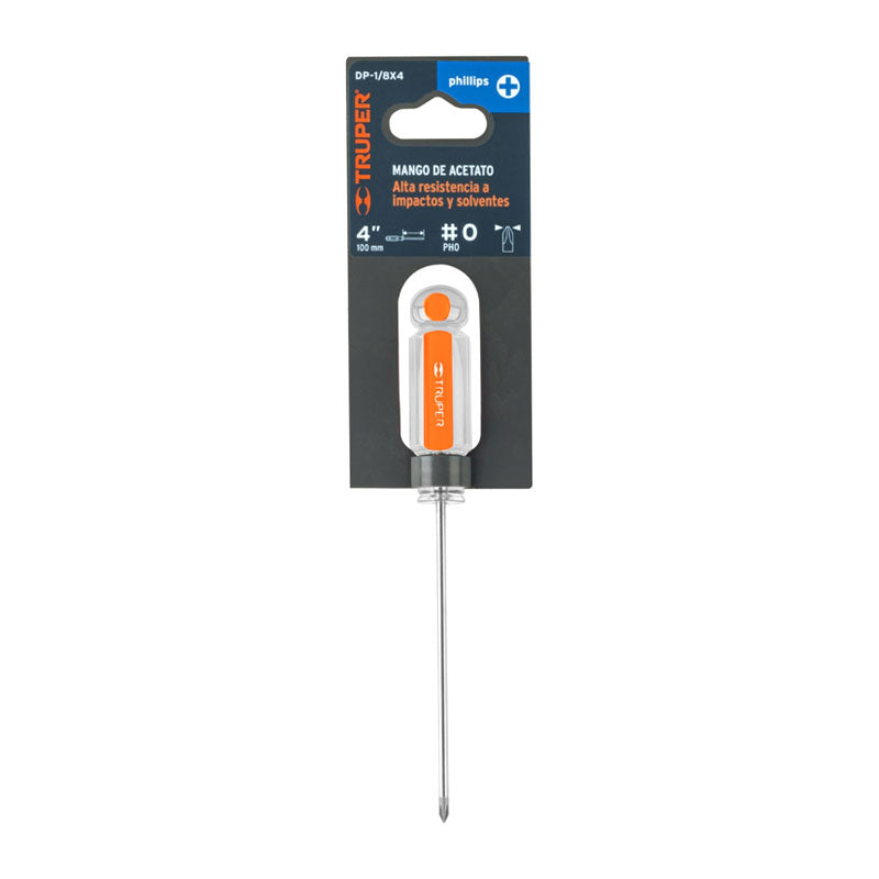 Desarmador de cruz 1/8" x 4" mango de acetato, Truper