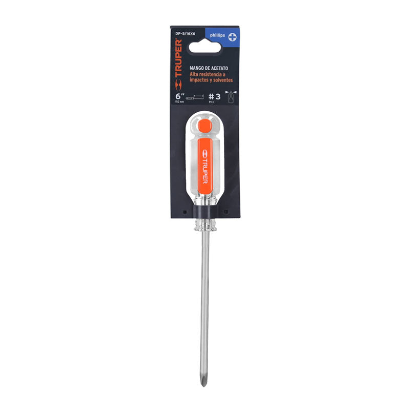 Desarmador de cruz 5/16" x 6" mango de acetato, Truper