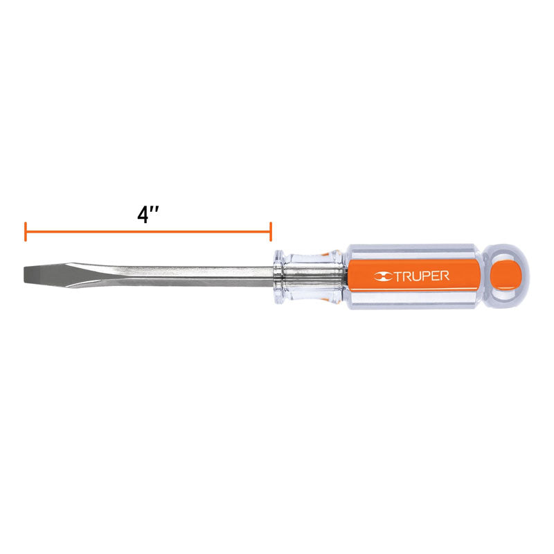Desarmador plano 1/4 x 4" barra cuadrada mango acetato, Truper