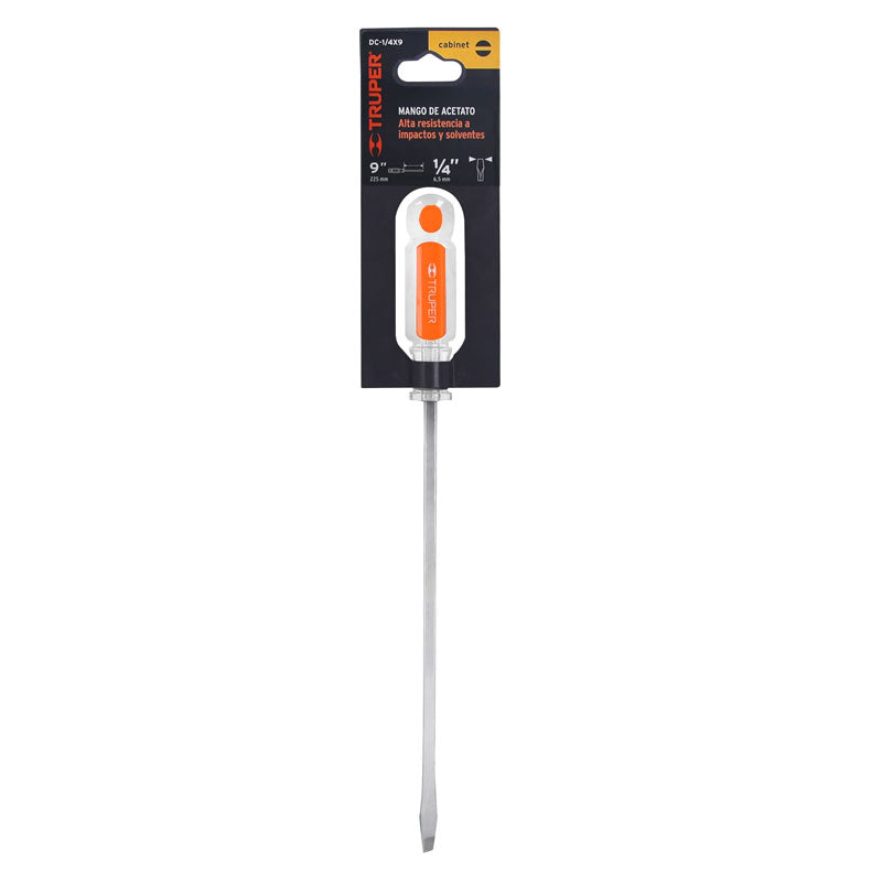 Desarmador plano 1/4 x 9" barra cuadrada mango acetato, Truper