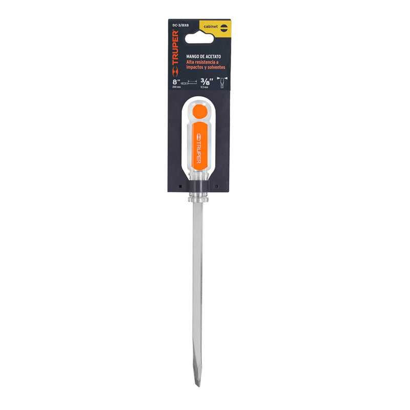 Desarmador plano 3/8 x 8" barra cuadrada mango acetato, Truper